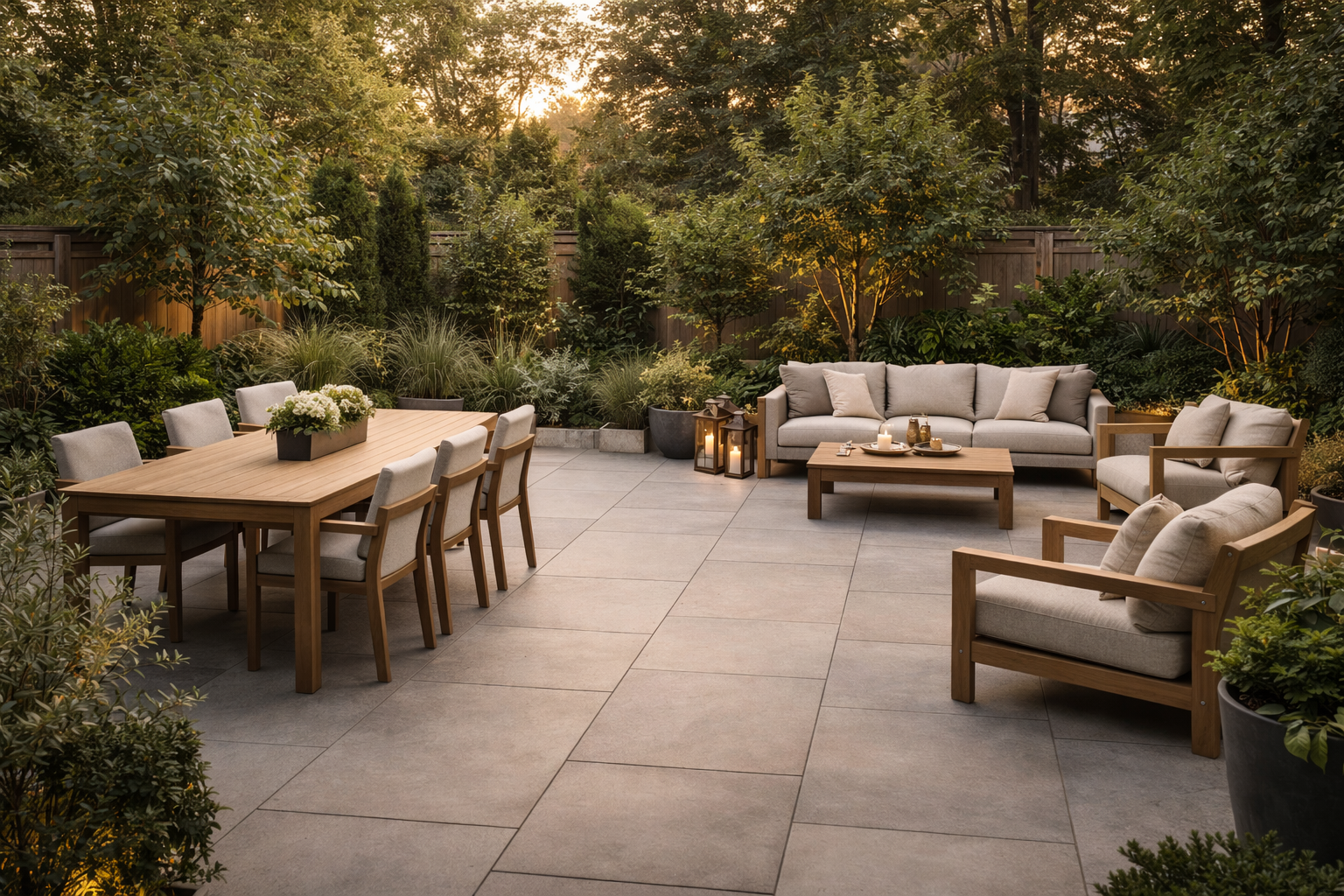 Een terras met tuin tegels 60×60 oogt ruimtelijk en rustig. Dat komt doordat je minder voegen ziet en het oppervlak één geheel vormt. Voor terras inspiratie is dat ideaal: je krijgt een neutrale basis die bij veel stijlen past, van strak tot warm.
